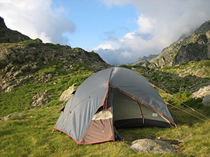 Halverwege 2014 merkte ik dat mijn oud tentje toch niet meer zo waterdicht bleek te zijn. Hetzelfde type tent bestond nog, maar woog meer. Dat zag ik totaal niet zitten. Na lang zoeken en twijfelen is het uiteindelijk de Lightwave g20 trek geworden. In het begin was het een haat/liefde verhouding. Het opzetten was niet te vergelijken met mijn vorig tentje. Na de trektocht in Parc des écrins was ik verkocht. Het opzetten lukte al veel beter. Er is voldoende ruimte. Bij slecht weer kan er vooraan gekookt worden. Hopelijk gaat dit tentje even lang mee als mijn vorige.
