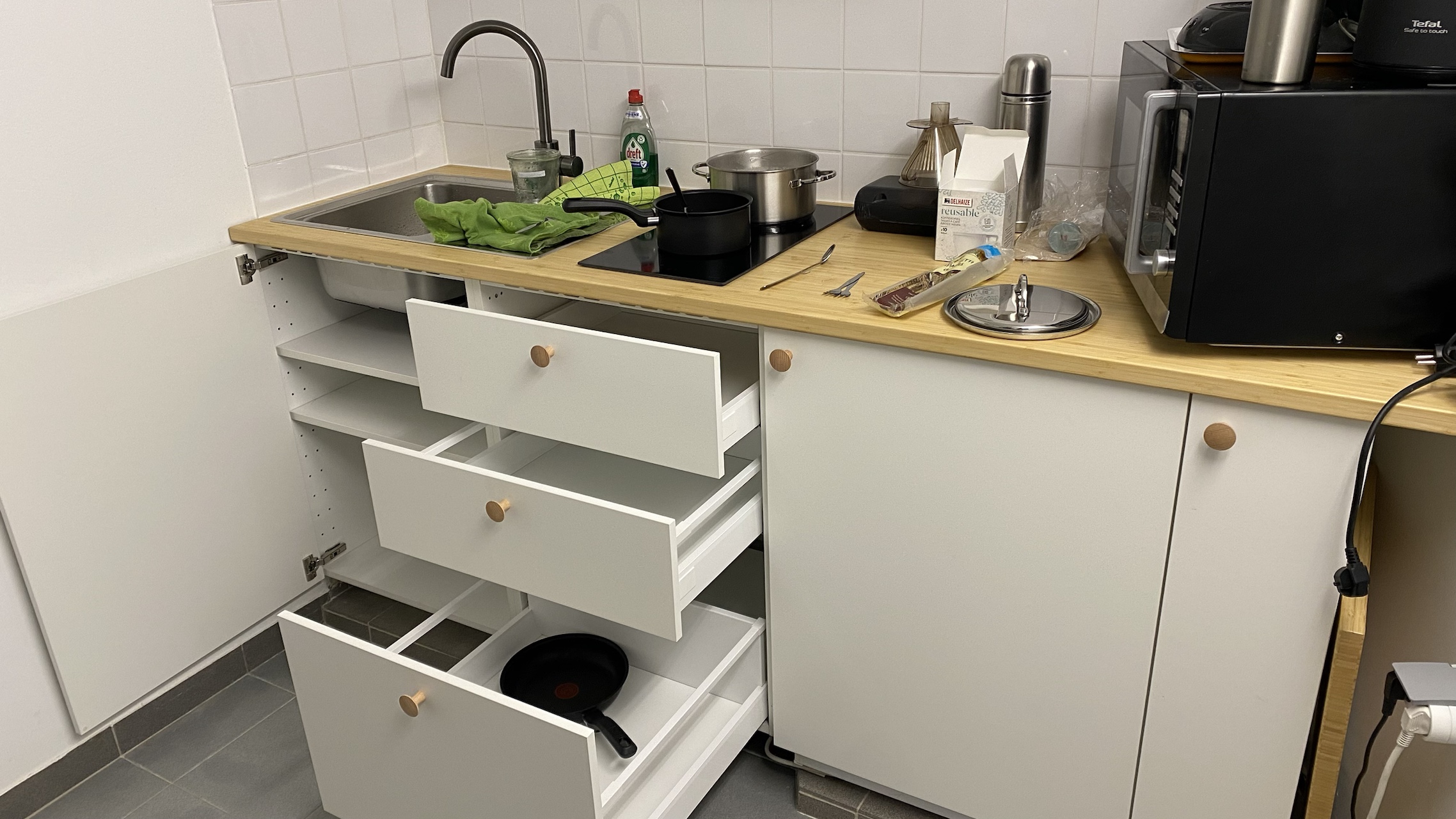 Tot we ter plaatse kwamen. We hadden eten mee om daar te bereiden in de ingerichte keuken. Zo stond het in ieder geval op de site. Er waren 2 potten en 1 pan aanwezig. Niets meer. Geen bestek, geen borden, geen glazen. Niets.